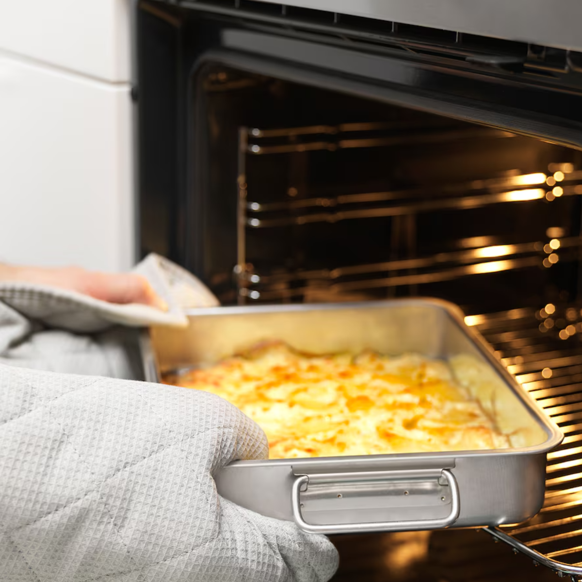 Gracias a sus medidas de 45 x 35 x 7 cm, ofrece una excelente capacidad para preparar platos al horno como carnes, pastas, vegetales, lasañas, postres o gratinados, tanto en contextos domésticos como en cocinas profesionales.