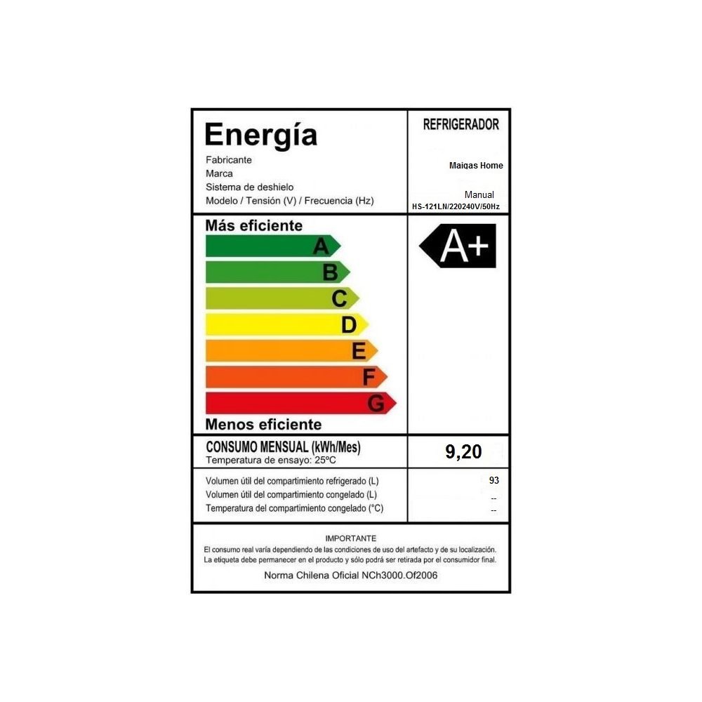 Especificaciones Técnicas Frigobar 93 Litros HS-121L MAIGAS: