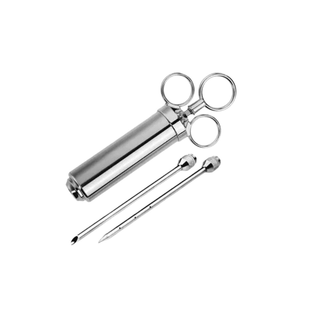 Fabricada en acero inoxidable 304 de grado alimenticio, es resistente, duradera, libre de óxido y segura para el contacto con alimentos. Su mango de tres anillos ofrece un agarre firme y cómodo, permitiendo una inyección precisa sin deslizamientos, incluso al trabajar con piezas grandes como pavos o cortes gruesos de vacuno.