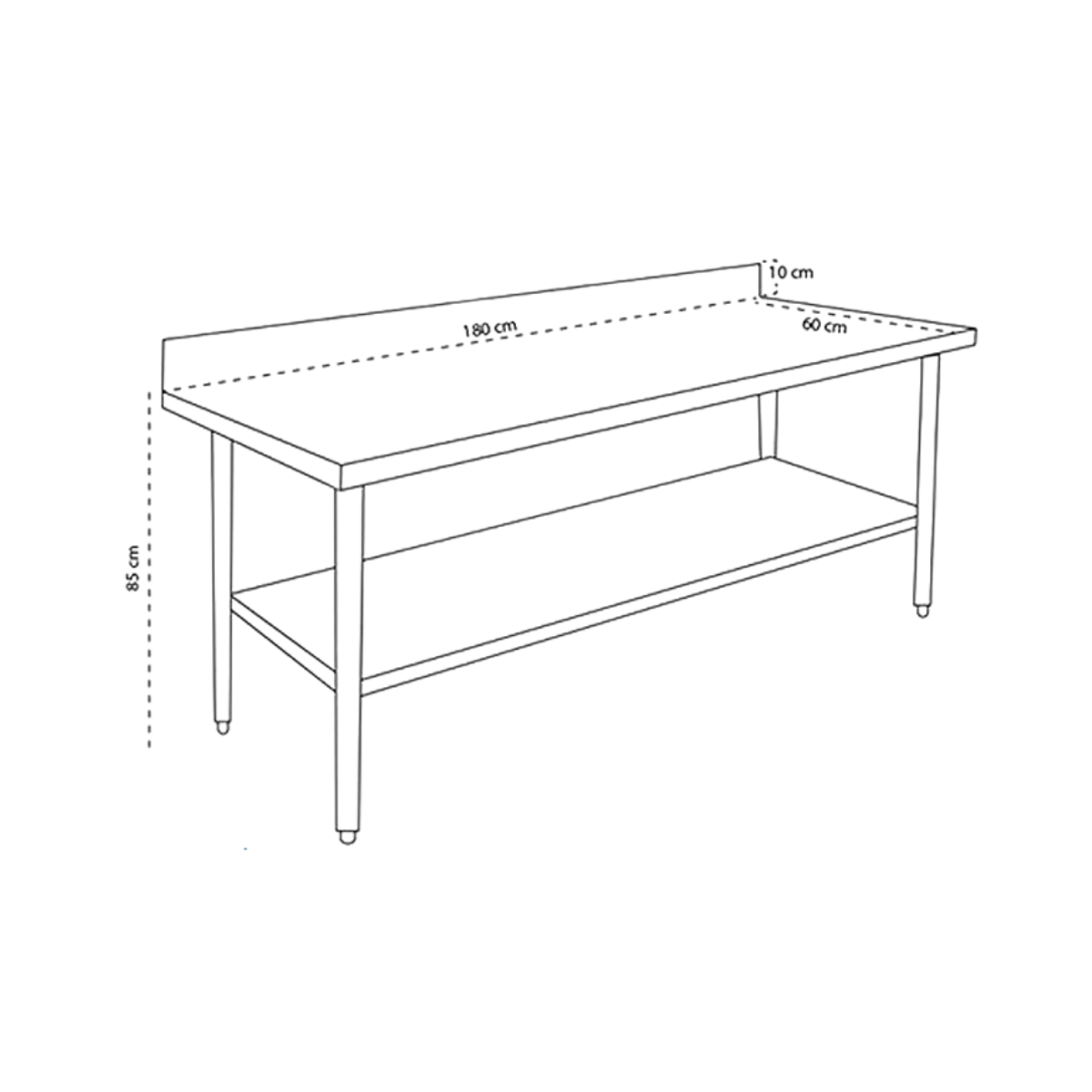 El Mesón de Acero Inoxidable Mural 180 cm es una solución práctica y eficiente para optimizar el espacio de trabajo en cocinas industriales, restaurantes, panaderías y laboratorios.