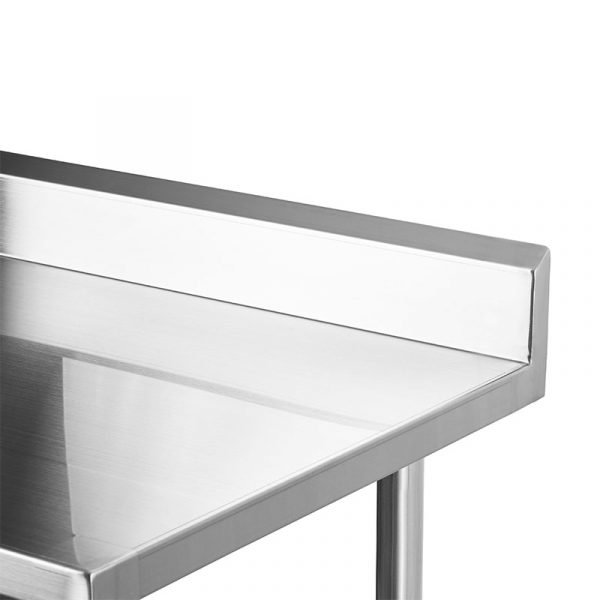 Mesón Mural 120 cm WT-1200E, con cubierta en acero inoxidable 430 de 1,2 mm y refuerzo interno perfilado.