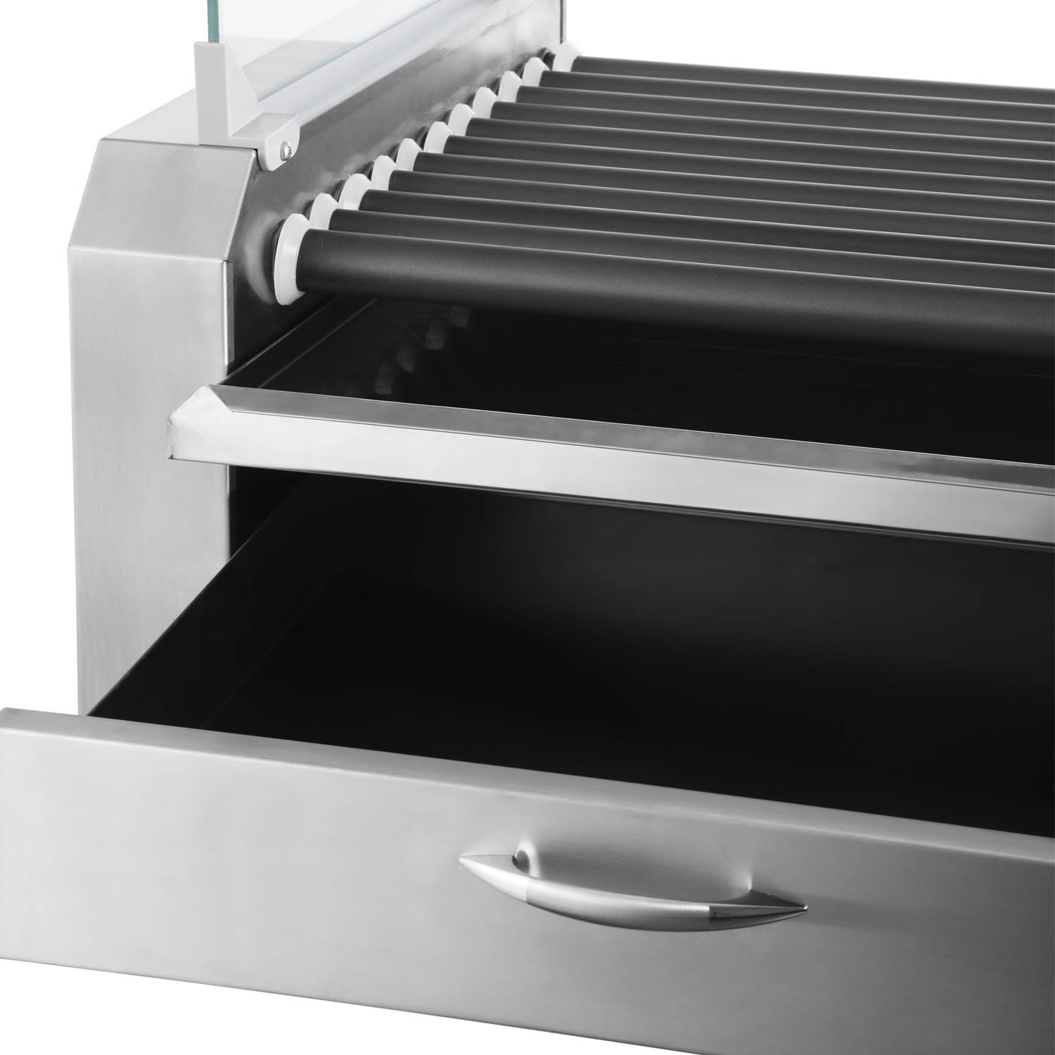 Roller Hotdog VRHD-9T Rodillos de teflón, cúpula de vidrio y cajonera de pan con control independiente de temperatura.